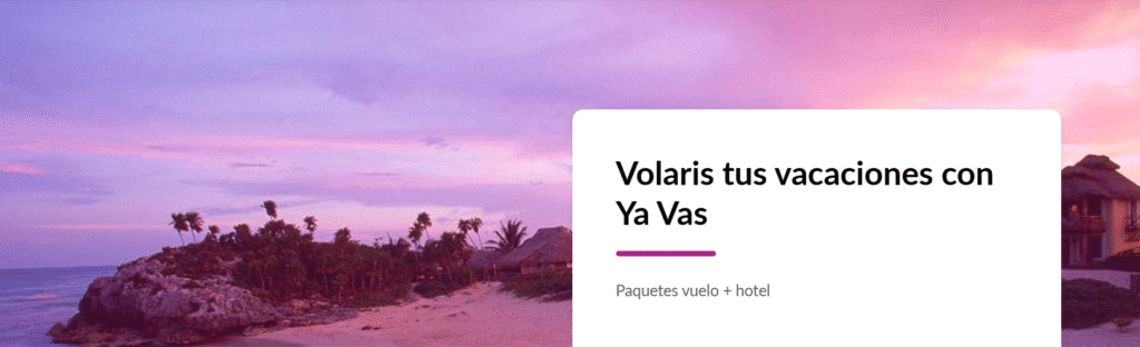Volaris, tus Vacaciones con Ya Vas te ofrece las mejores ofertas en paquetes vuelo + hotel para hacer de tu viaje la mejor experiencia, disfruta esas vacaciones que tanto estás esperando en los mejores hoteles con la mejor aerolínea de México. Ya Vas de Volaris te lleva en vuelo redondo con hospedaje y equipaje incluido, todo a los mejores precios.